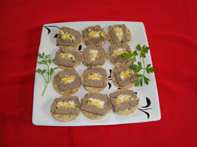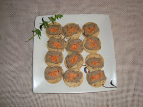 Fill the channel with your selected filling (egg, salmon,tuna) and put layer of Pate mix on top.